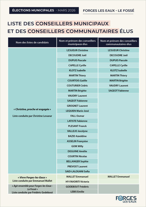 Découvrez les résultats des élections municipales à Forges-les-Eaux et la composition du nouveau conseil municipal.